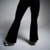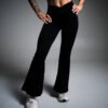 Sleek black flares with a comfy high waist and ribbed stretch. Studio to street, all day.