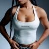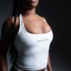 A white women’s gym vest that pairs with absolutely everything. Fresh, flattering, and made to highlight your figure, the perfect match for any leggings.