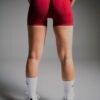 Deep wine-red shorts with a stay-put high waist and breathable four-way stretch. Ready for training and everyday style.